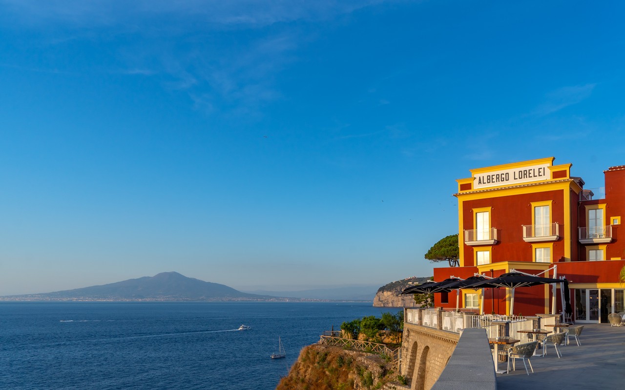 The terrace where sea and sky merge on the horizon and the Vesuvius stands majestically on the Bay of Naples with its light shows at the night time.